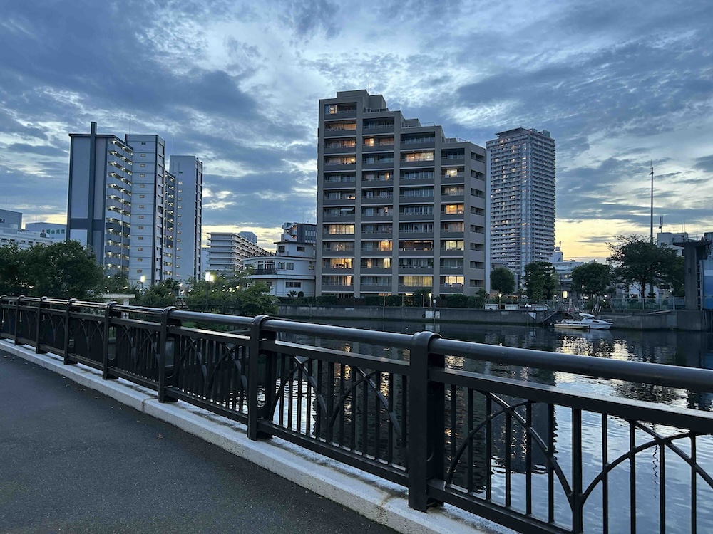 After a while, I started to look around more and take note of the scenic spots like canals hidden beyond the more busy roads. The image below is near Kiba park.