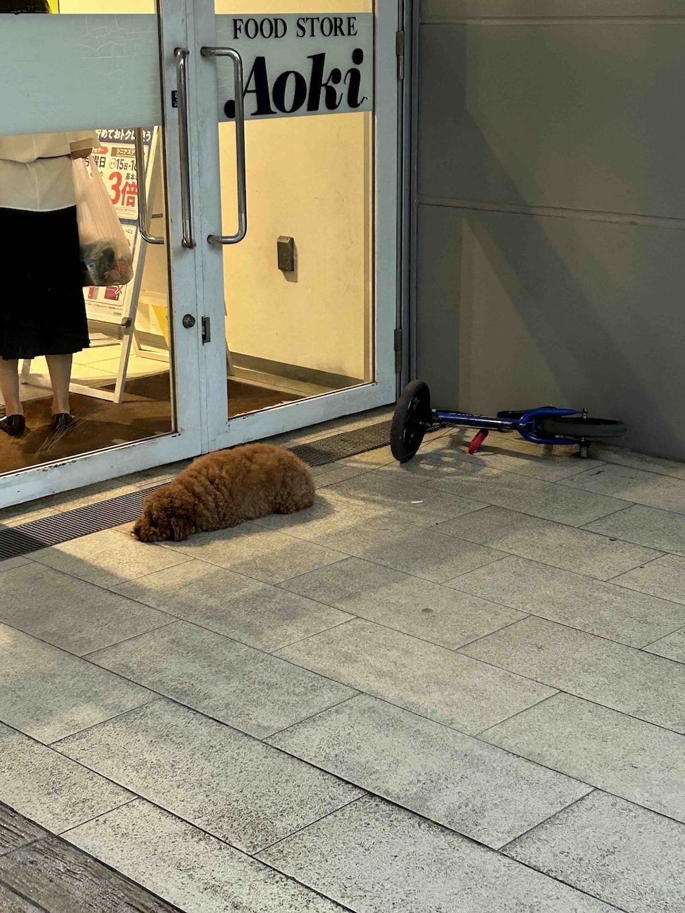 I see a lot of bikes and small dogs around. This one looked so sad, perhaps it was too hot outside.