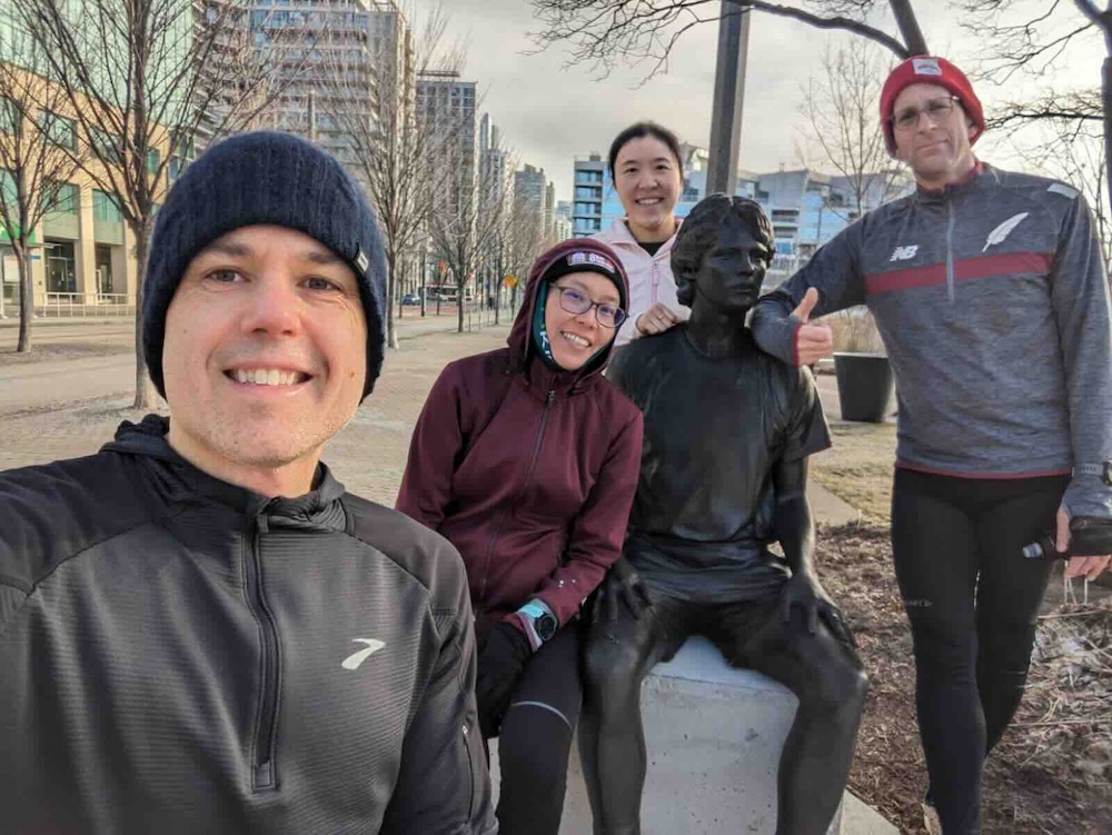 Another Sunday long run with the Longboat regulars: Jon, Mary, and Steve. We stopped by the new Terry Fox sculpture. I'm thankful for this group because having running friends motivated me to always show up and run. It's funny how running friends end up being the people you see most often.