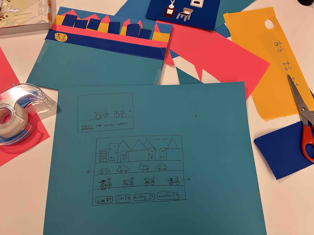 I initiated a JavaScript coding challenge with designers at work and wanted to experiment with p5.js to create a cityscape visualization. Using some bright paper, I designed a scene that I wanted to code with moving bikes, cars, and buildings. I didn't end up following through to the end. In reflection, I have continually aspired to work on programmatic visualizations over the years but prioritized other things instead. I have to accept that some side of desk things won't get finished and I shouldn't let the shame stop me from picking it back up again in the future.