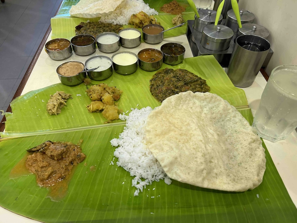 May was another travel month that had been planned a while back. This time it was a long one to Asia. I was mostly tagging along with Renato while he visited colleagues in India and attended a conference in Singapore. We then took a short trip to Bangkok for vacation. In Bengaluru, one of the places we ate at was Bheema's on Church Street serving Andhra food. The meal was served on a large banana leaf and the servers kept replenishing portions until I told them to stop because I was so full.