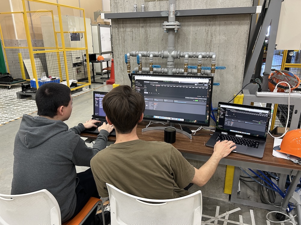 The afternoon would be more or less like the morning but since I worked at a robotics factory, I was able to go into the robot cells from time to time to test features. I liked this space because you could see integrators and engineers testing out various robot systems. The cells I used were basic palletizing applications where the robot would stack incoming boxes. There were some really complex ones too.